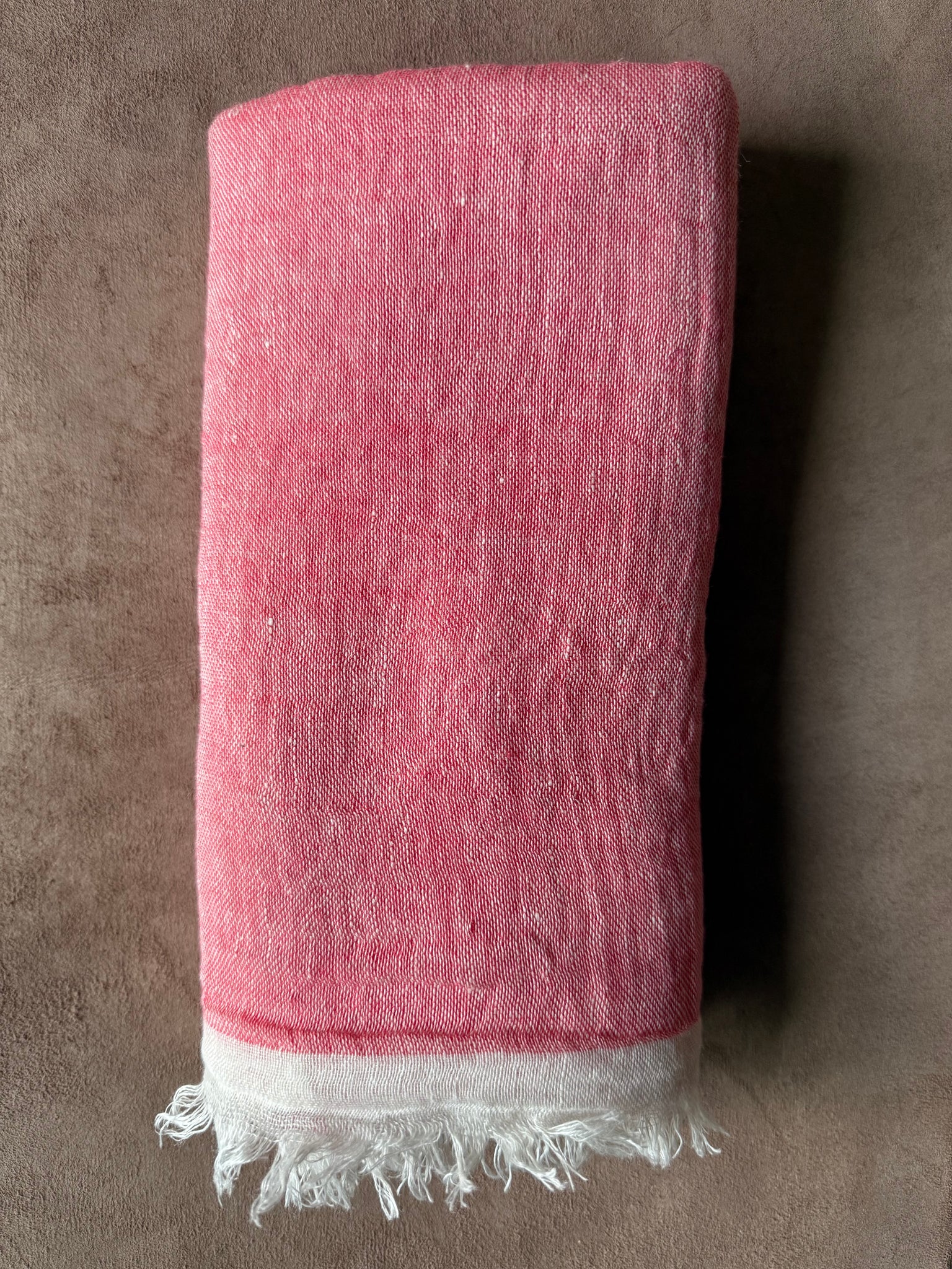 Sourced directly from the weaver in a small hidden workshop in the Marrakech souks. Coral. Hand wash in cold water. 29" X 73"