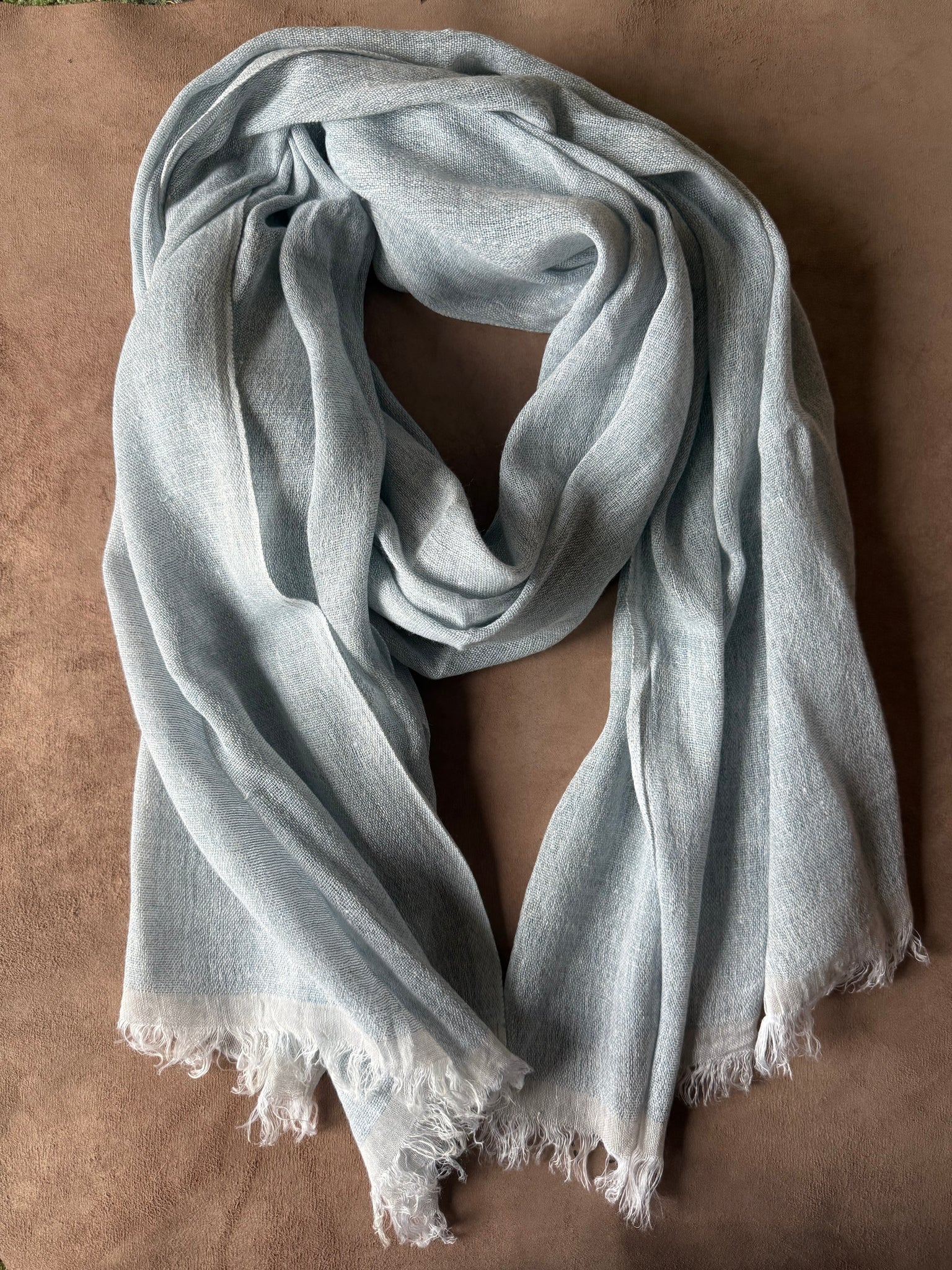 Sourced directly from the weaver in a small hidden workshop in the Marrakech souks. Soft blue. Hand wash in cold water. 29" X 73"