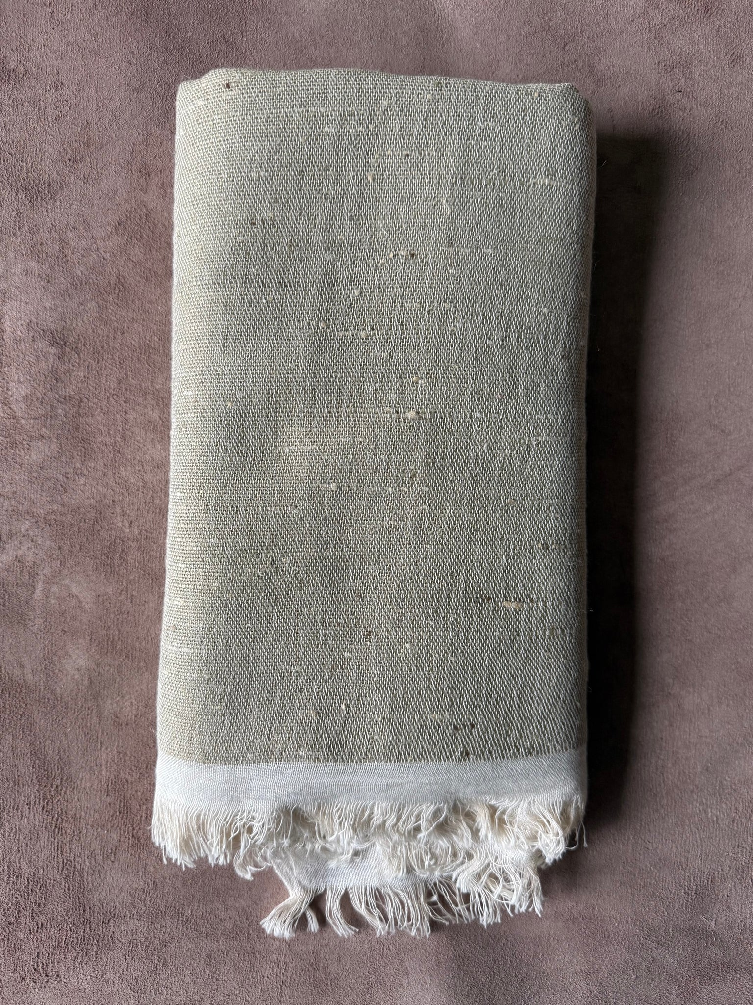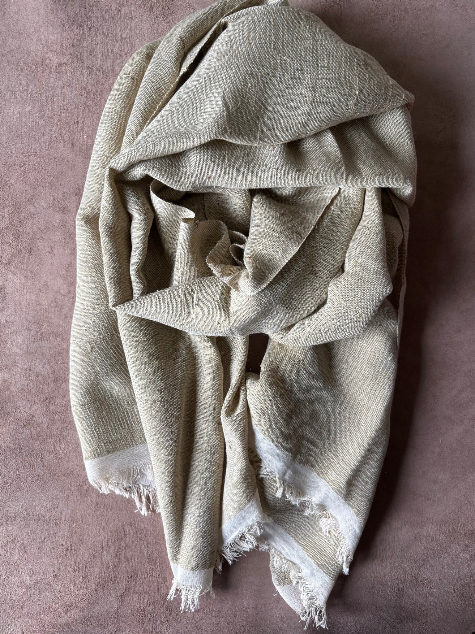 Sourced directly from the weaver in a small hidden workshop in the Marrakech souks. Textured wheat color. Hand wash in cold water. 29" X 73"